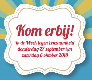 /in WaddinxveenVanaf 27 september tot en met 6 oktober 2018 is de landelijke Week tegen Eenzaamheid. Met het thema ‘Kom erbij!’ willen we in Waddinxveen geen toeschouwer zijn maar een ander uit te nodigen om iets leuks te gaan doen.